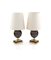 PRODUZIONE ITALIANA Lampade da tavolo - a forma di boccia in metallo finto tartaruga con paralume - cm 28 base13x9 - 1960