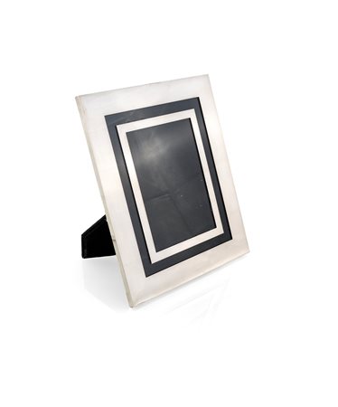WILLY RIZZO Cornice - da tavolo con supporto in metallo cromato e vetro nero firma incisa - cm37x31 - 1970
