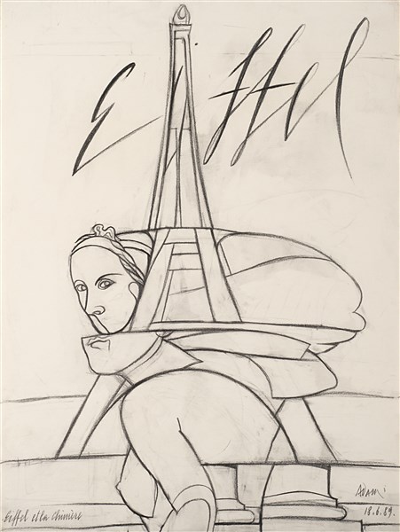 Valerio Adami "Eiffel et la chimere" 1989 matita su carta cm 48x36 Firmato e dat