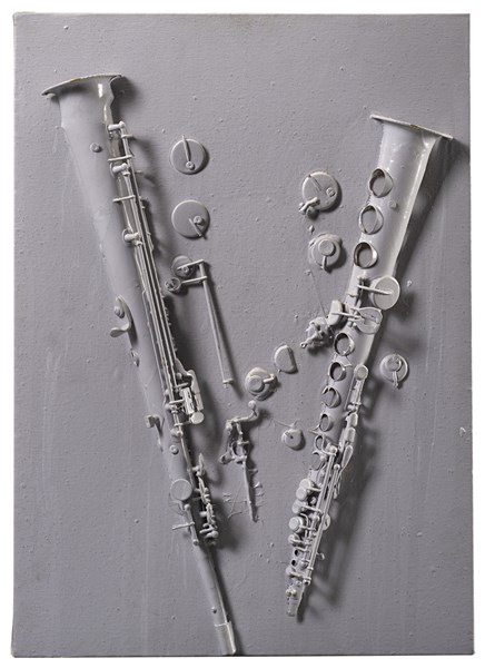 Arman "Senza titolo" 1998 sassofono su tela e pittura acrilica applicata su tavo