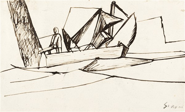 Mario Sironi "Barca e pescatore" 1920 circa china su carta cm 13x21,5 Provenien