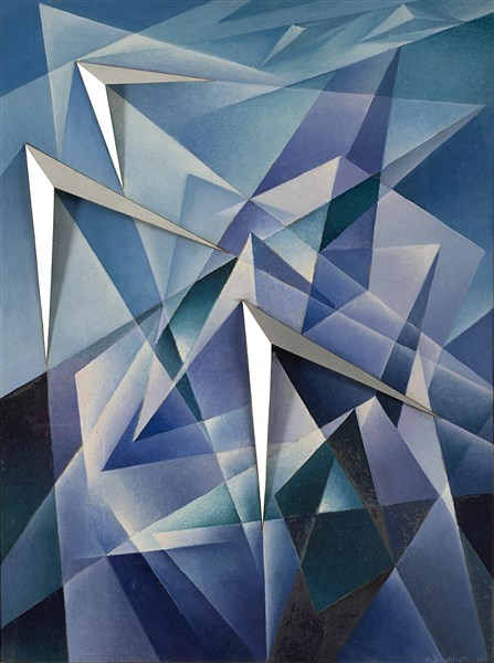 Alessandro Bruschetti "Volo ad alta quota" 1970 olio e collage su masonite cm 70