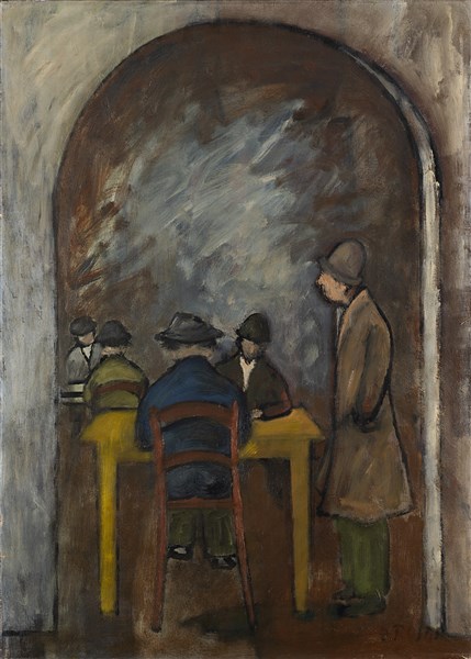 Ottone Rosai "Interno con figure" 1950 circa olio su tela cm 70x50 Firmato in ba