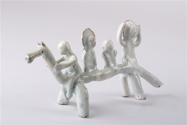 Fausto Melotti "Bambini" 1955 circa ceramica smaltata policroma cm 9,2x21 Opera