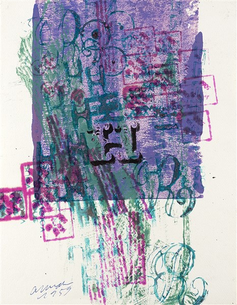 Arman "Senza titolo" 1959 tecnica mista su carta cm 27x21 Firmato e datato 1959