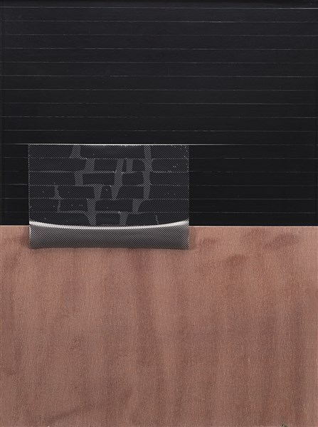 assemblage of adhesive tape, plastic film, paper and pastel on canvas