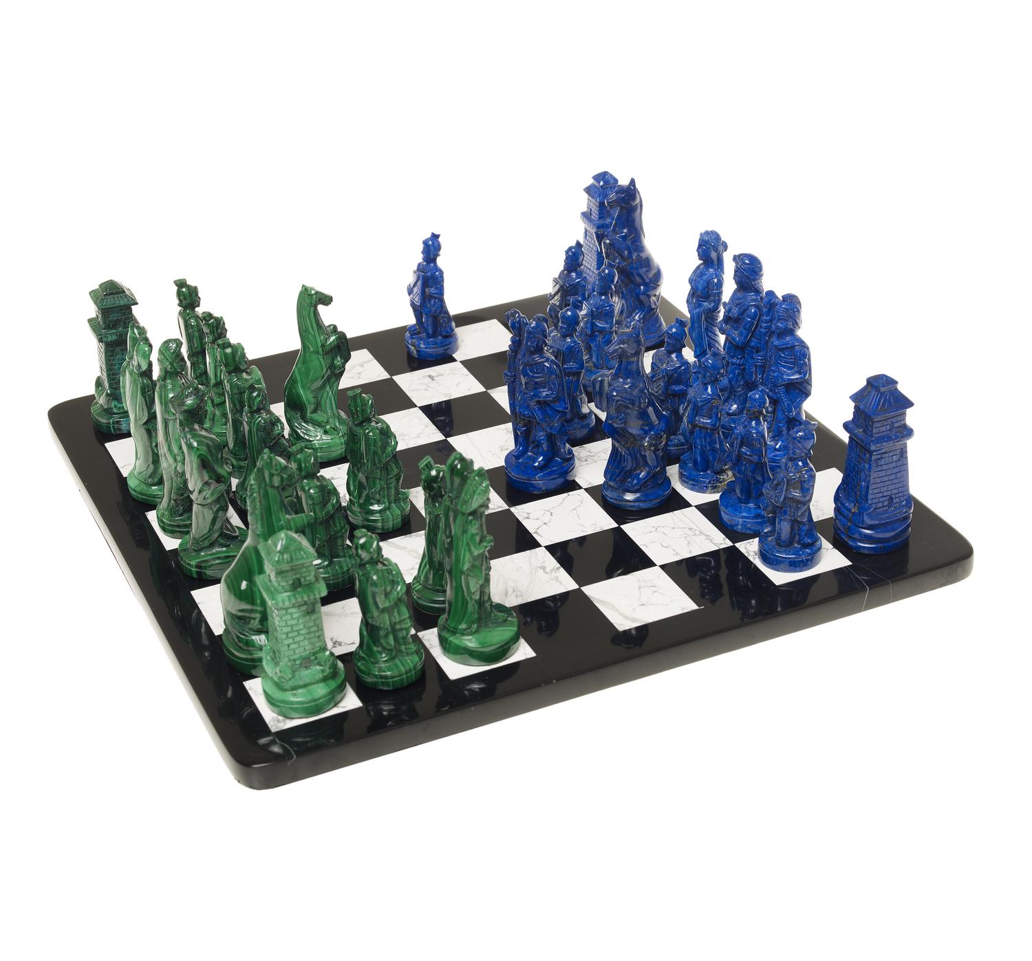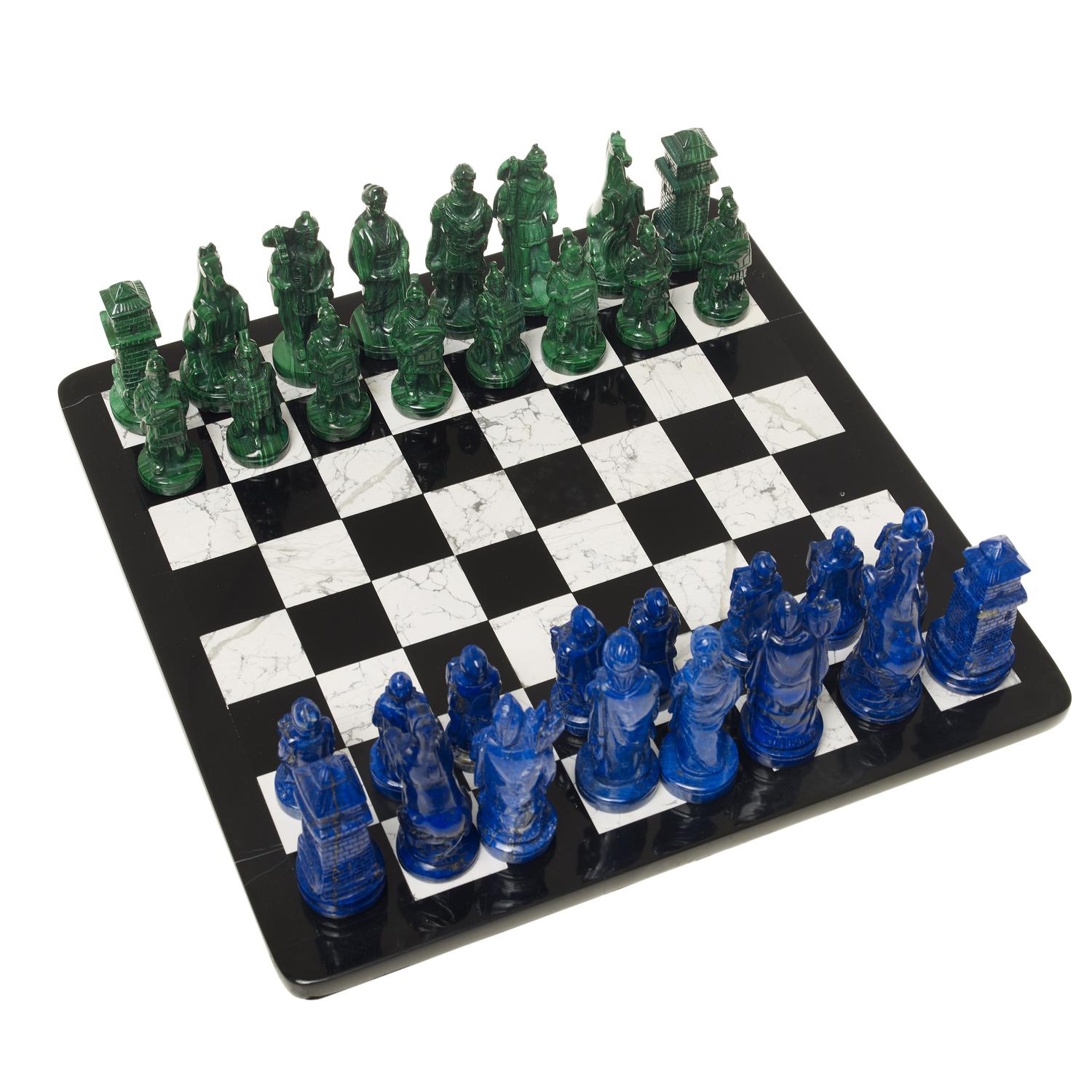 Lot 8 | SCACCHIERA in marmo, con pezzi in malachite e lapislazzuli, cm 29x29 CHESSBOARD