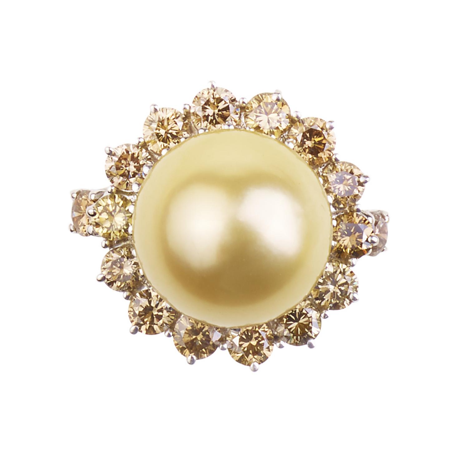 SOUTH SEA GOLD PEARL, FANCY DIAMOND AND WHITE GOLD RING