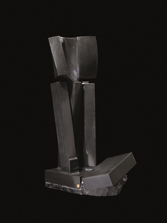 Gio' Pomodoro (Orciano di Pesaro 1930 - Milano 2004) POLLUCE marmo nero del belgio, cm 70x22,5x36 firmato Provenienza: Acquisito dall'attuale proprietario direttamente dall'artista L'opera è una versione del Polluce facente parte del gruppo scultoreo I Dioscuri, realizzato dall'artista nel 1987 per il Palazzo della Banca d’Italia di Milano