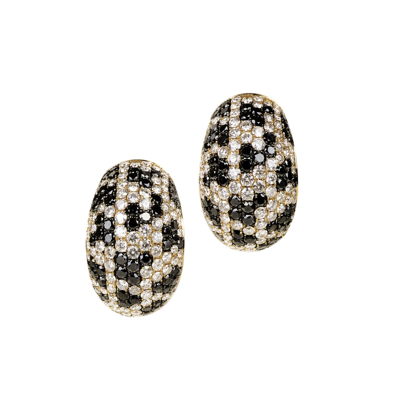 realizzati a semicerchio bombato impreziositi da pavé di diamanti incolori e neri per ct 8 circa, punzone 750, g 25