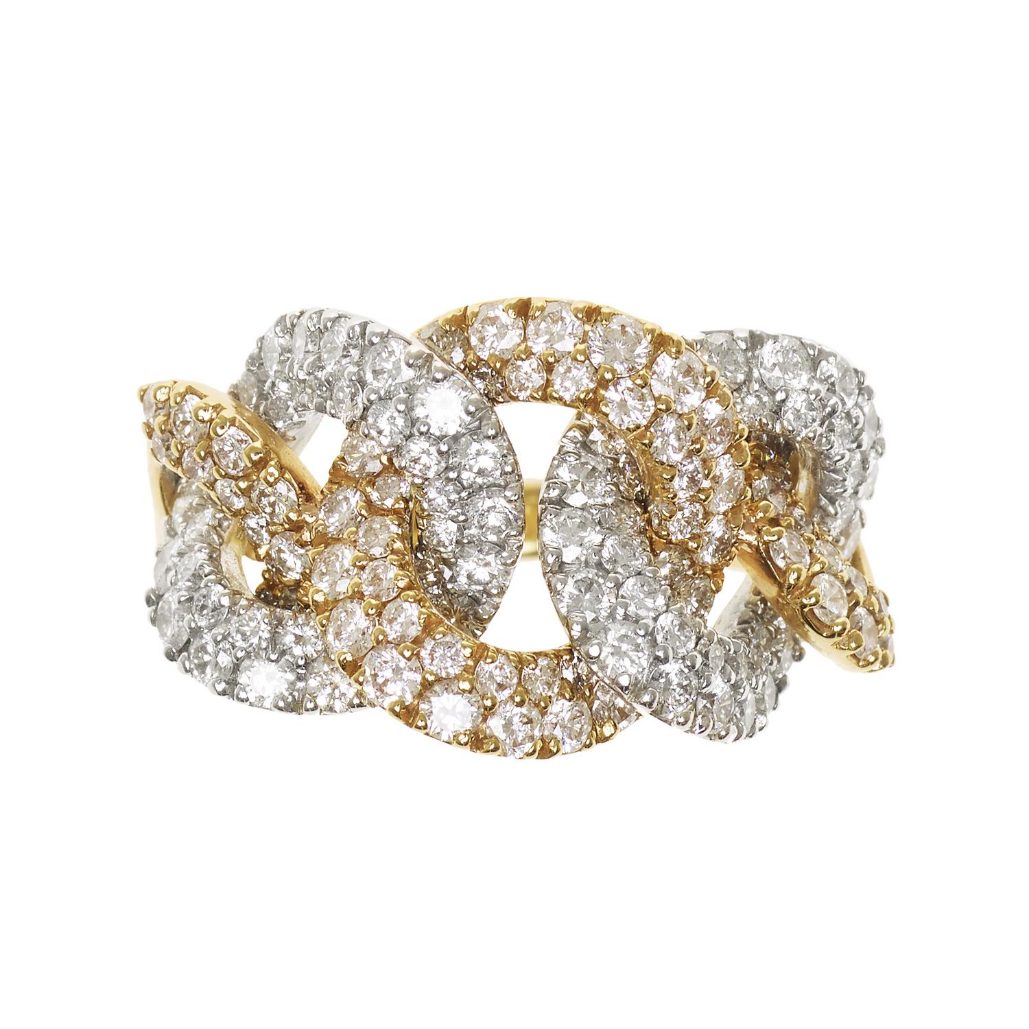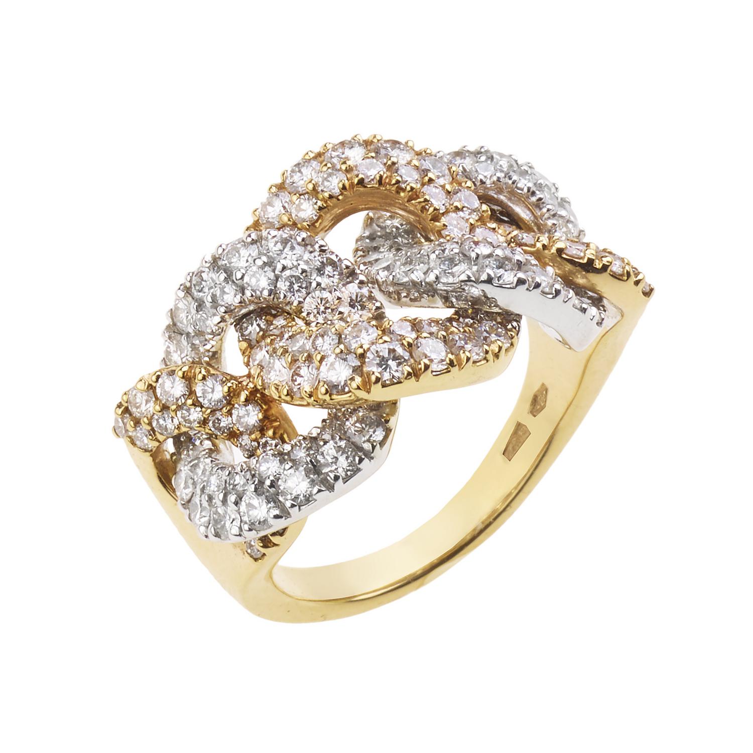 ANELLO IN ORO ROSA, BIANCO E DIAMANTI la parte superiore realizzata a maglia...