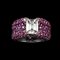 DIAMOND, PINK SAPPHIRES AND BRUNISHED GOLD RING