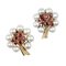 disegnati come dei fiori, al centro rubini per ct 3.6 circa, piccoli diamanti ed un contorno di sedici perle coltivate mm 9-10, punzone 750, dim cm 3,5-4, g 47