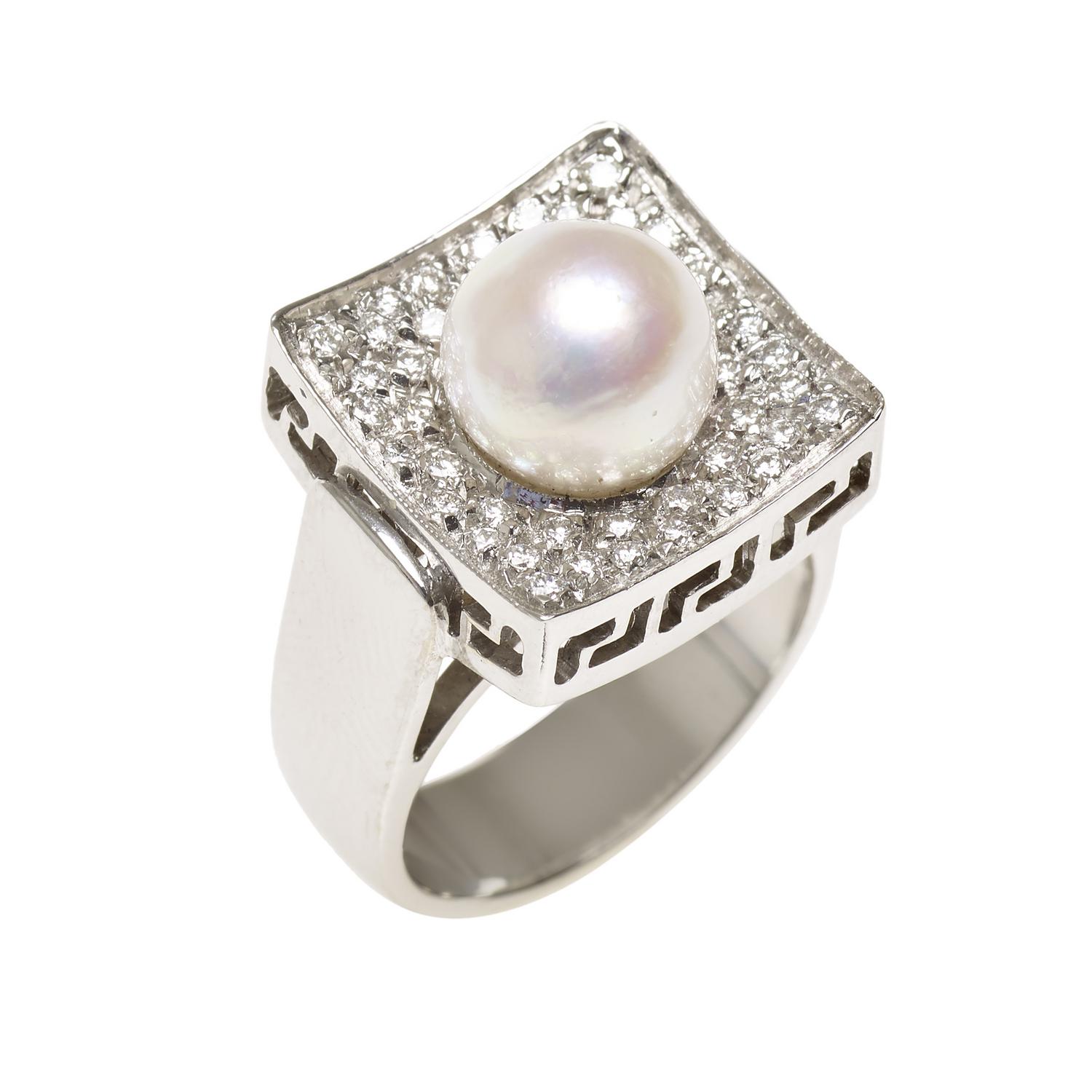 ANELLO IN ORO BIANCO, DIAMANTI E PERLA COLTIVATA