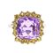 al centro un'ametista taglio cuscino di ct 7.40 circa contornata da zaffiri gialli di forma rotonda per ct 1.90 circa, punzone 750, mis 13,5, g 6,3