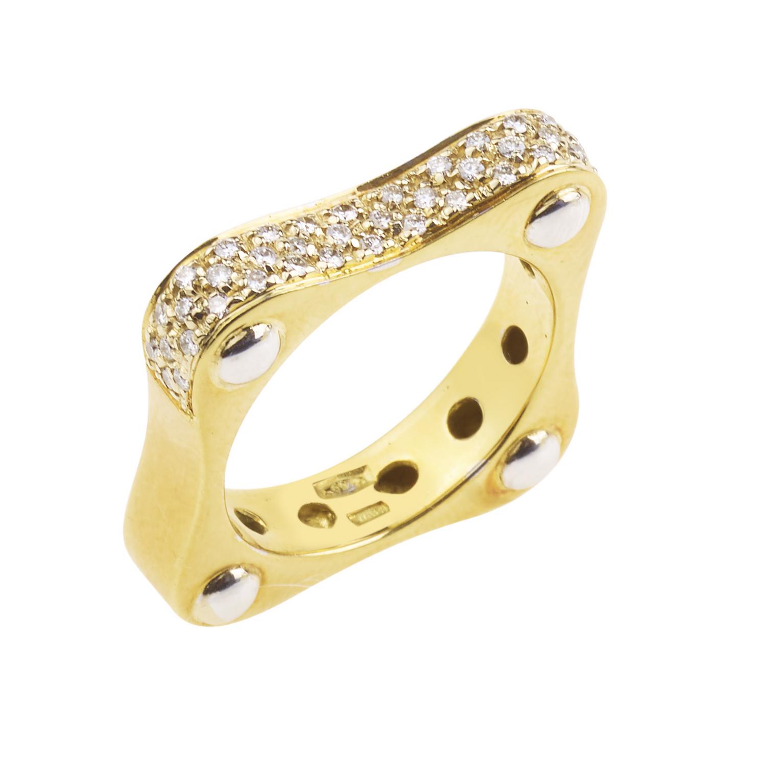 ANELLO IN ORO GIALLO E DIAMANTI realizzato come una fascia quadrangolare...