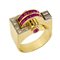 DIAMOND, RUBY AND YELLOW GOLD RING