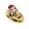 ANELLO IN ORO GIALLO, DIAMANTI E RUBINO modellato a testa di ariete ed...