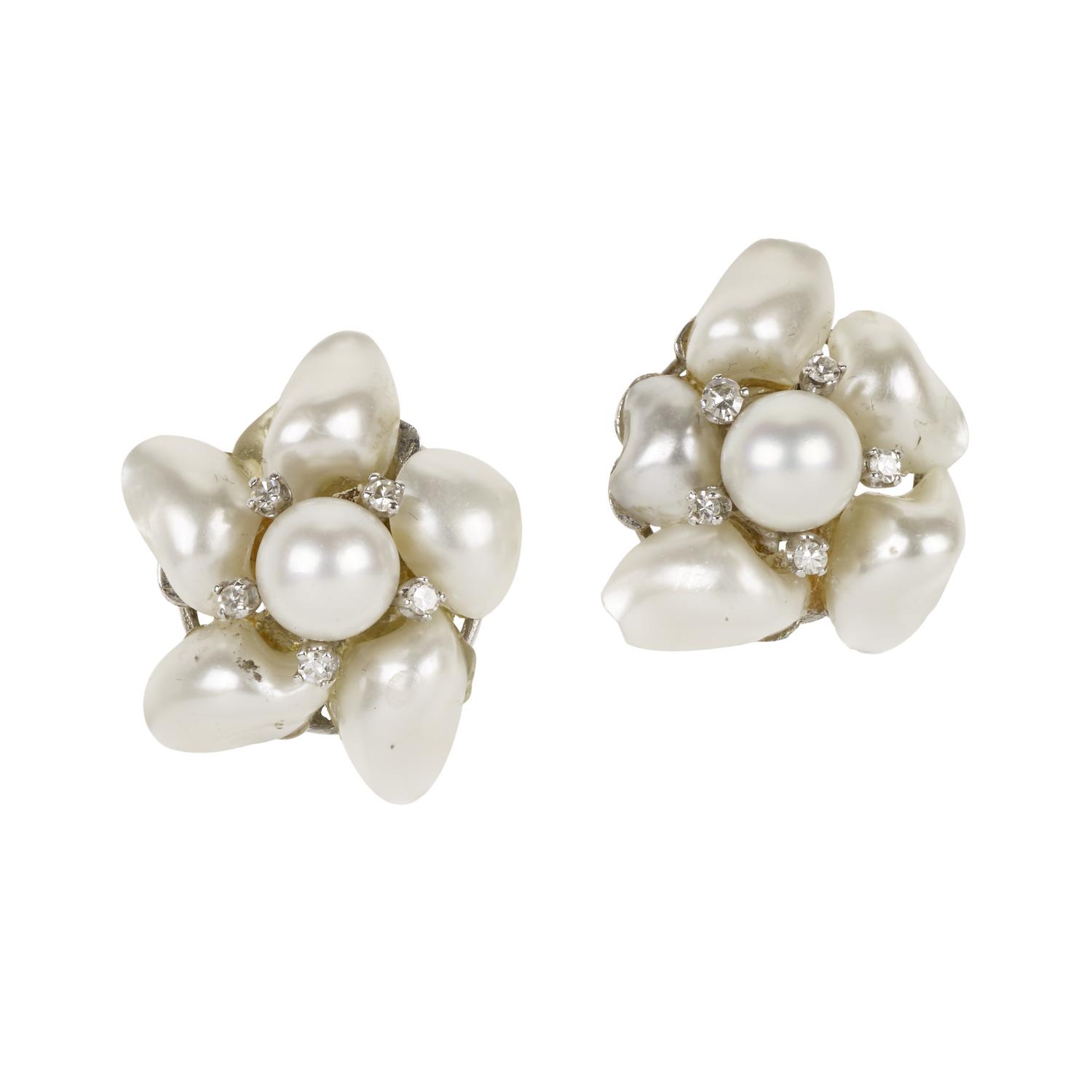PEARL, DIAMOND AND WHITE GOLD EARRINGS