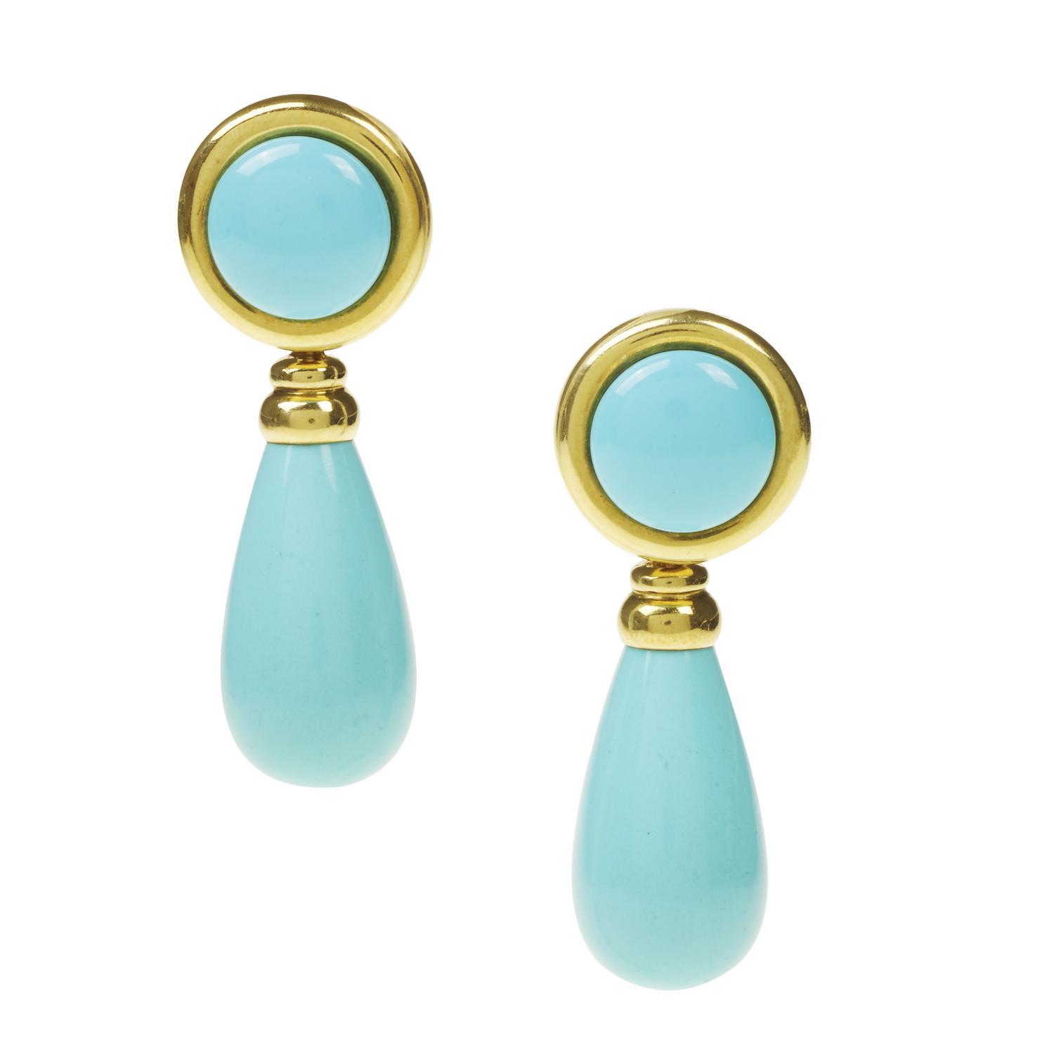 PAIO DI ORECCHINI PENDENTI IN ORO GIALLO E TURCHESE