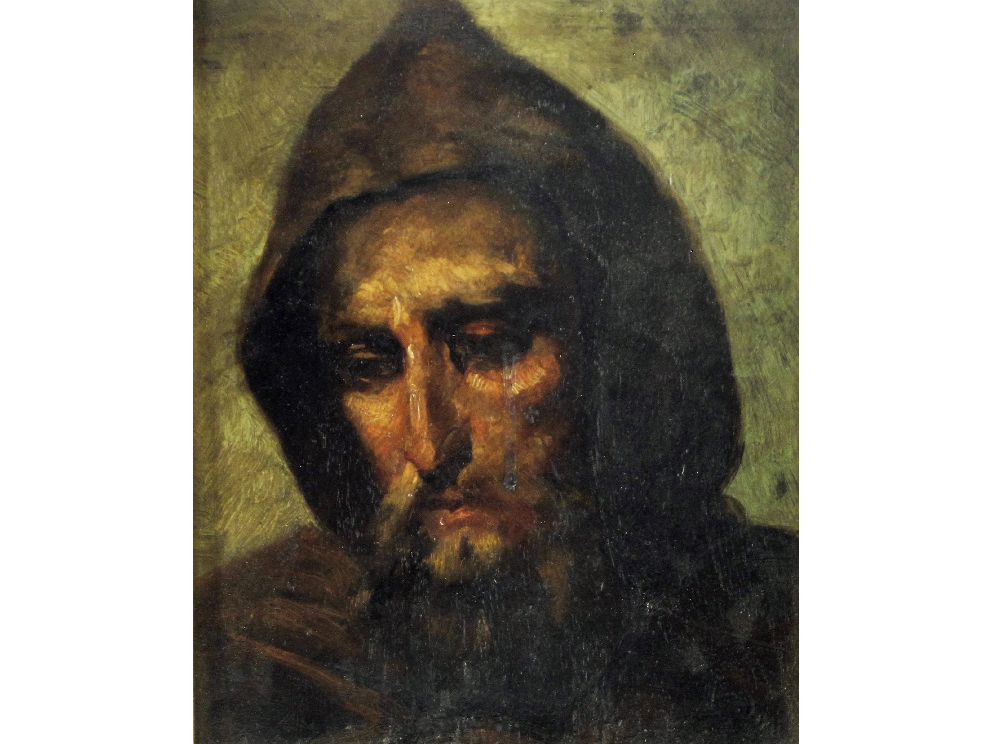 Scuola francese Frate Olio su tavola Misure 21x17,3 cm