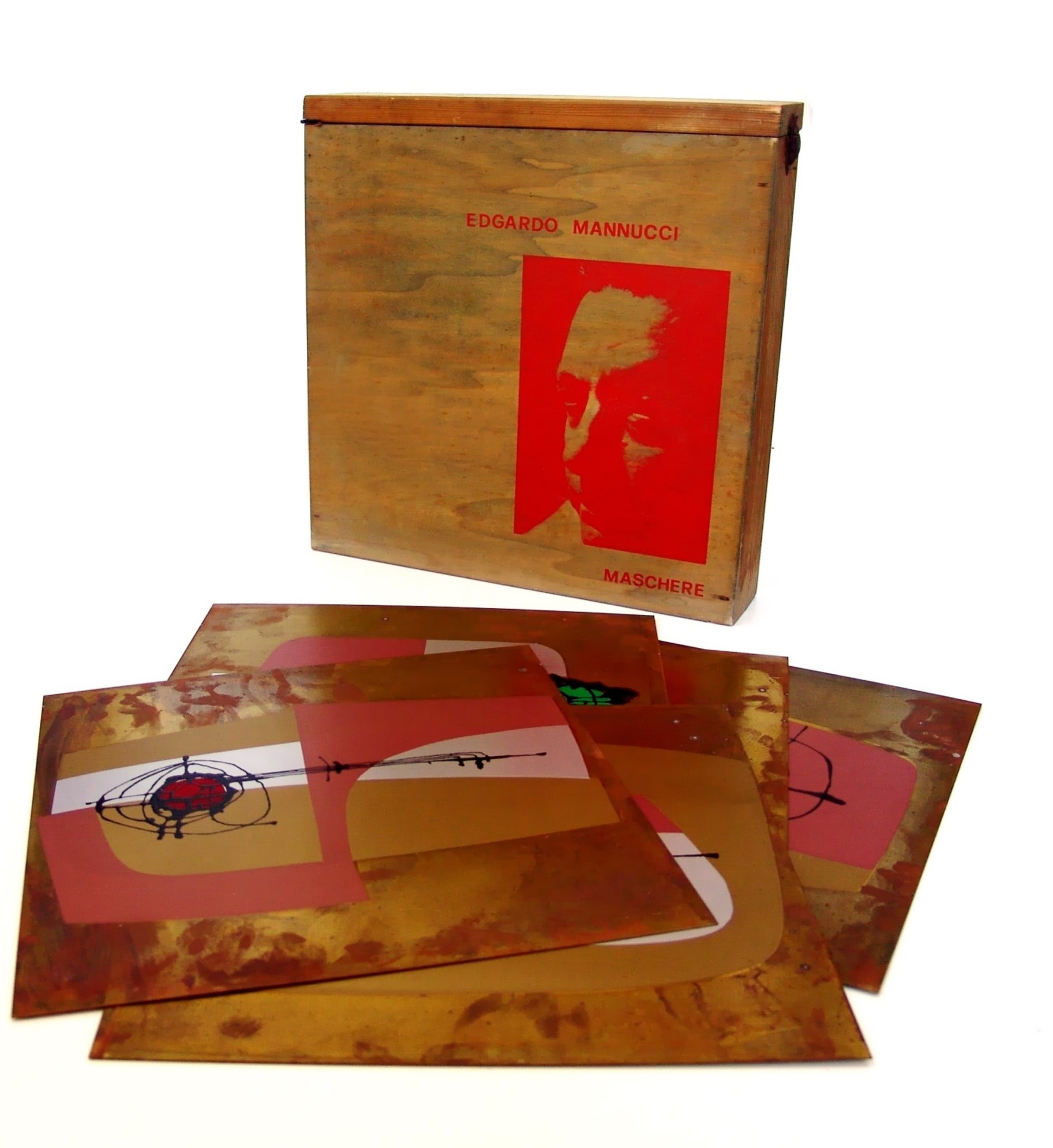 es. 14/20, n. 5 tavole su lastre di ottone firmate a mano dall’artista, cofanetto in legno formato 36x38 cm