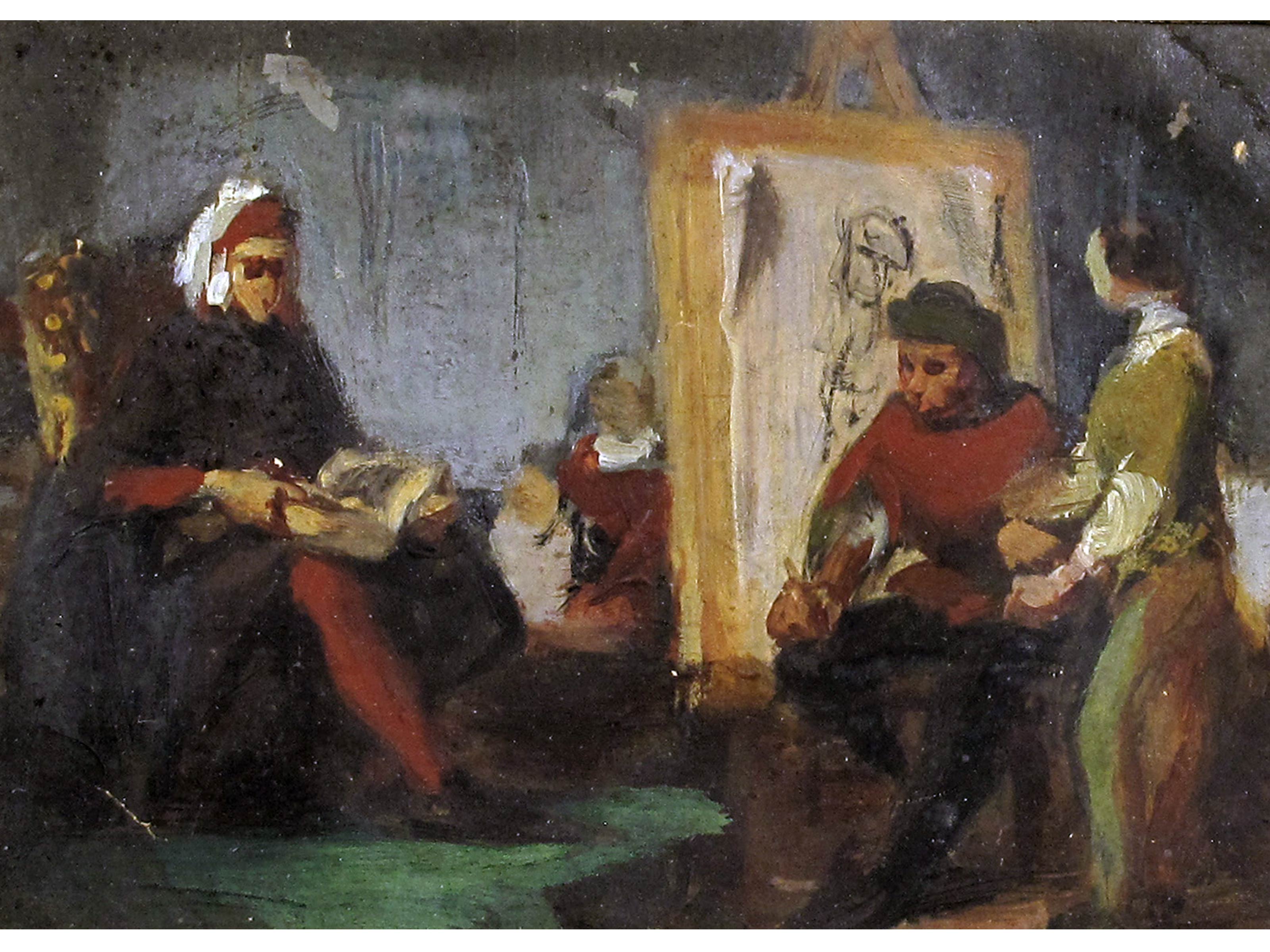 Domenico Scattola (Verona 1814–Milano 1876) Studio di pittore Olio su carta...