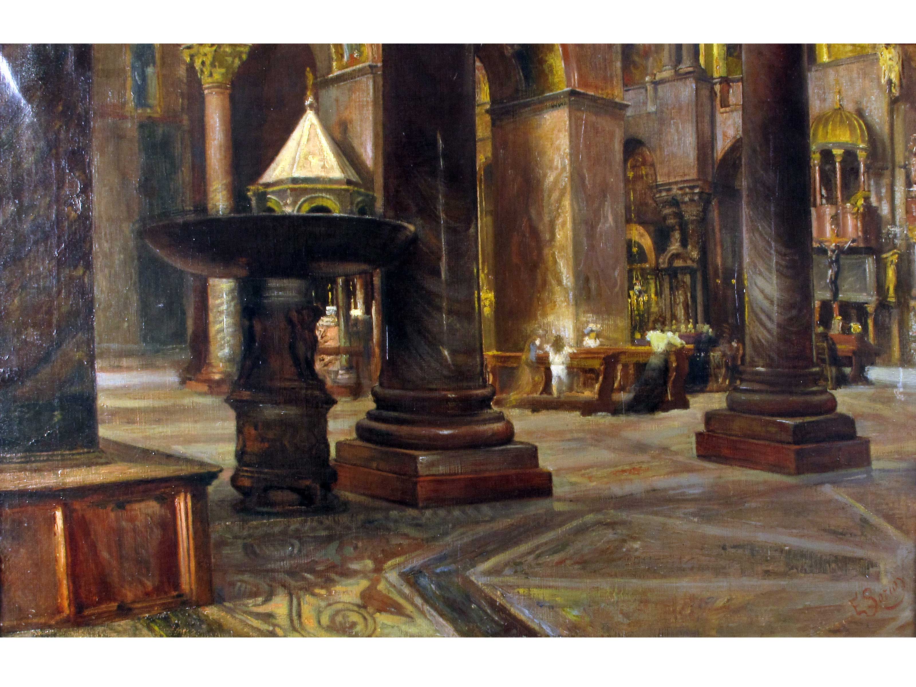 Enrico Sorio (Verona 1838-Milano 1909) Interno della cattedrale di San Marco Olio su tela Firmato Misure 39x59,5 cm