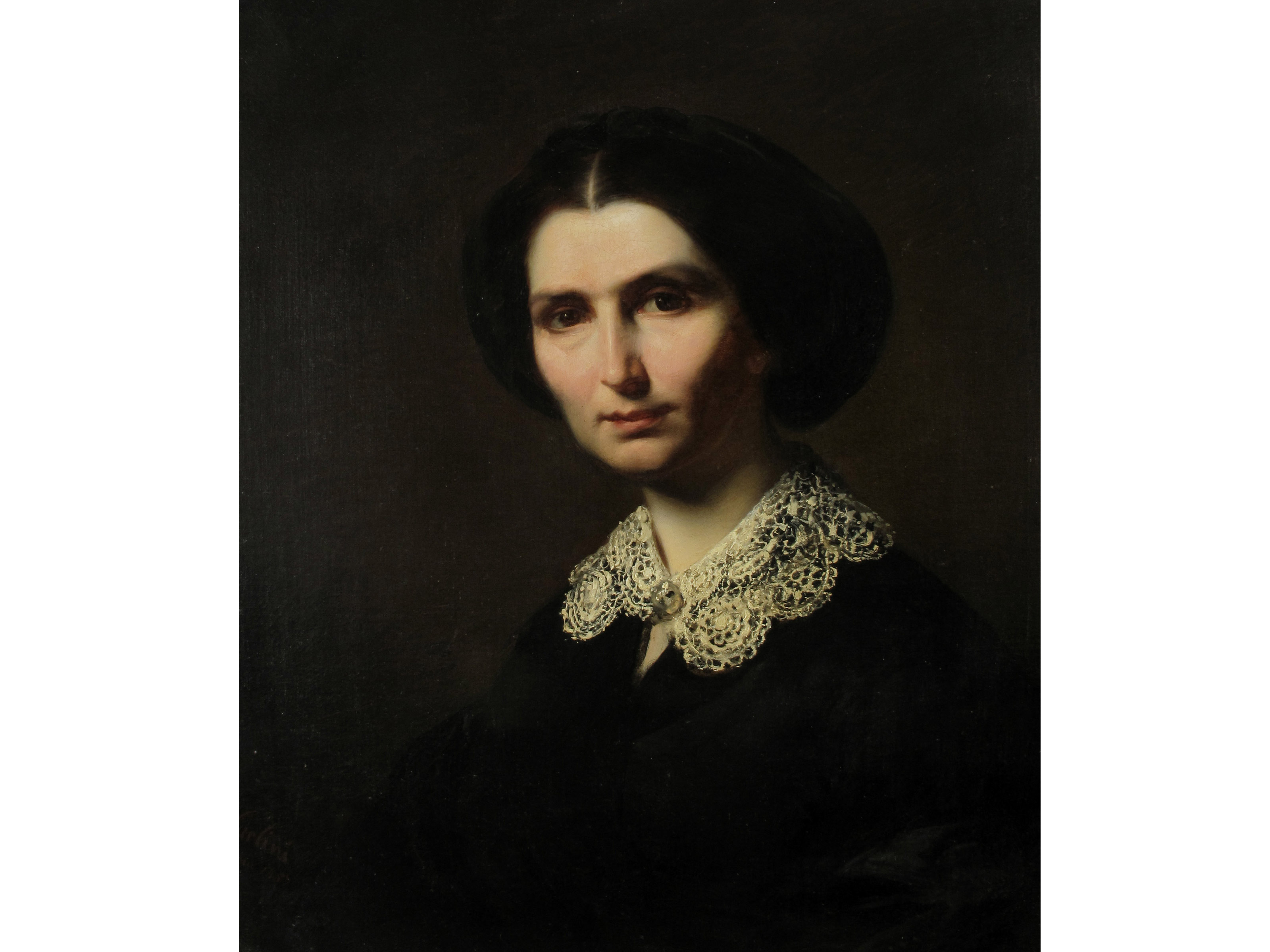 Giulio Carlini (Venezia 1830-1887) Coppia di ritratti Olio su tela Uno firmato Misure 75x64 cm