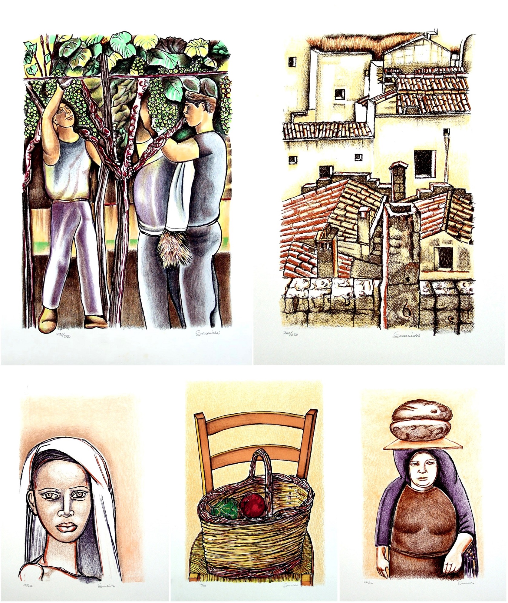 es. 221/250, cartella con 5 litografie firmate a mano dall'artista