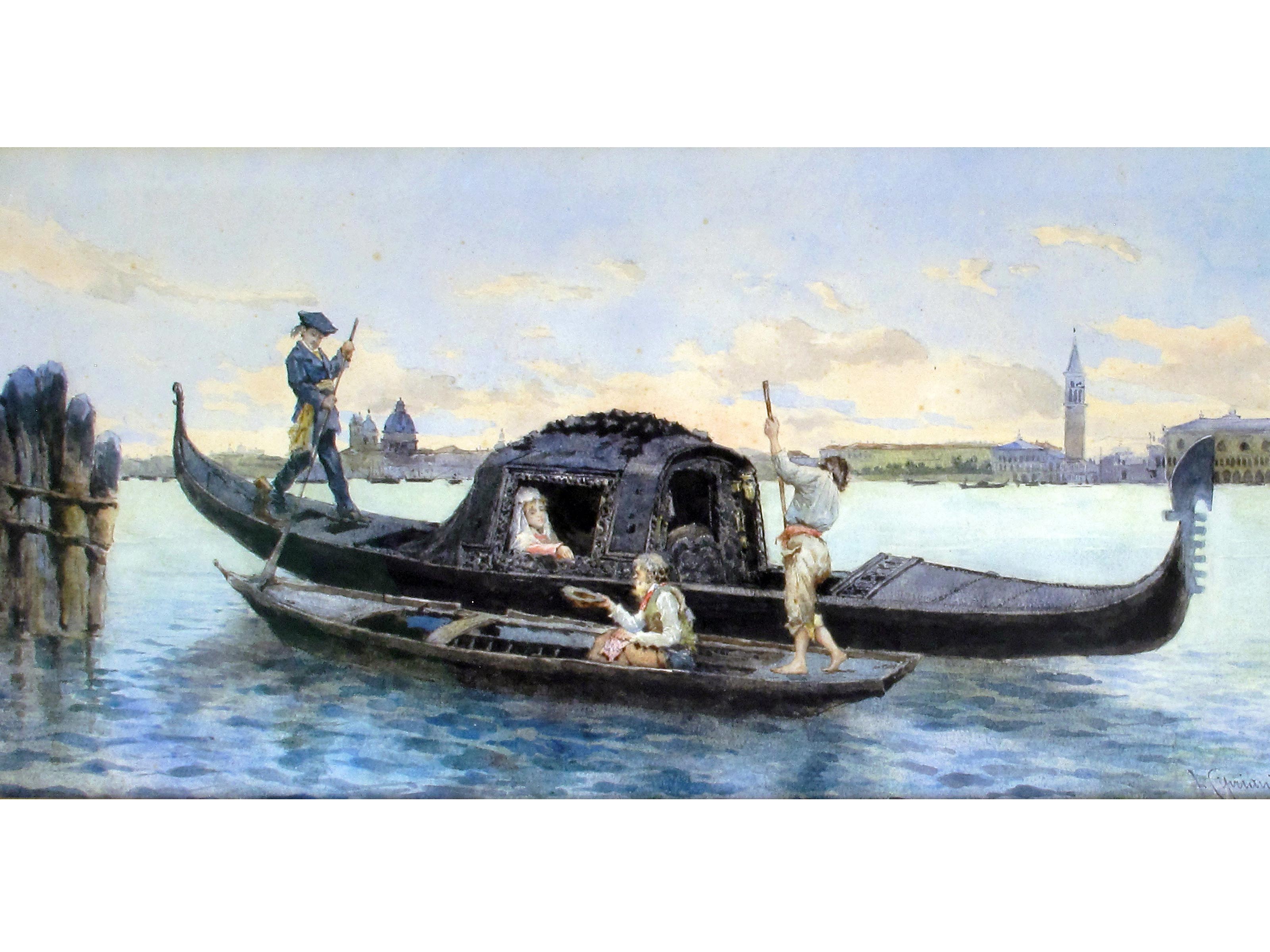 Lot 55 | Nazareno Cipriani (Roma 1843-1923) L'Elemosina Acquarello su carta Firmato...