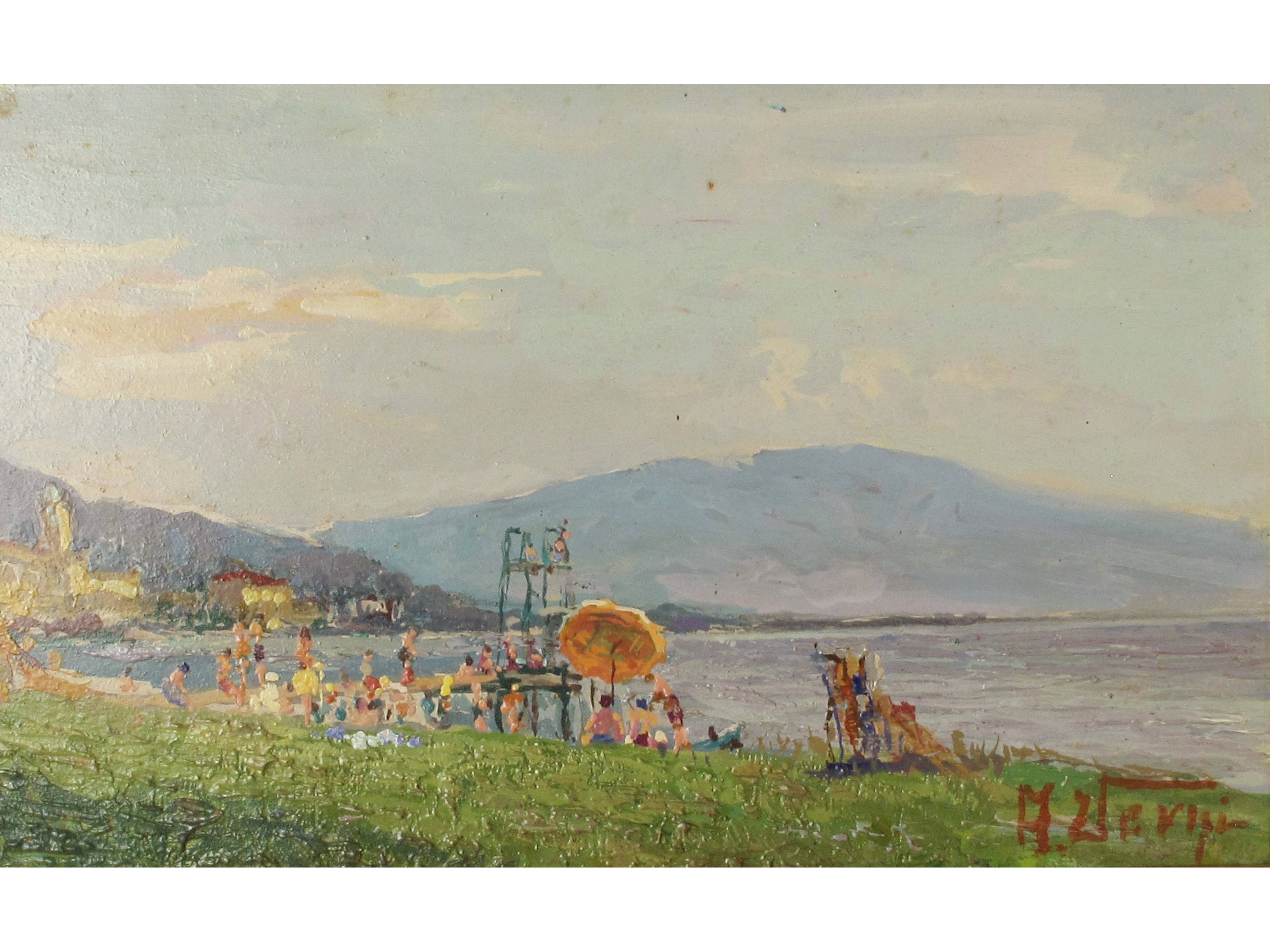 Arturo Verni (Brescia 1891-1960) Rimbalzello Olio su tavoletta Firmato Misure 18,7x30 cm