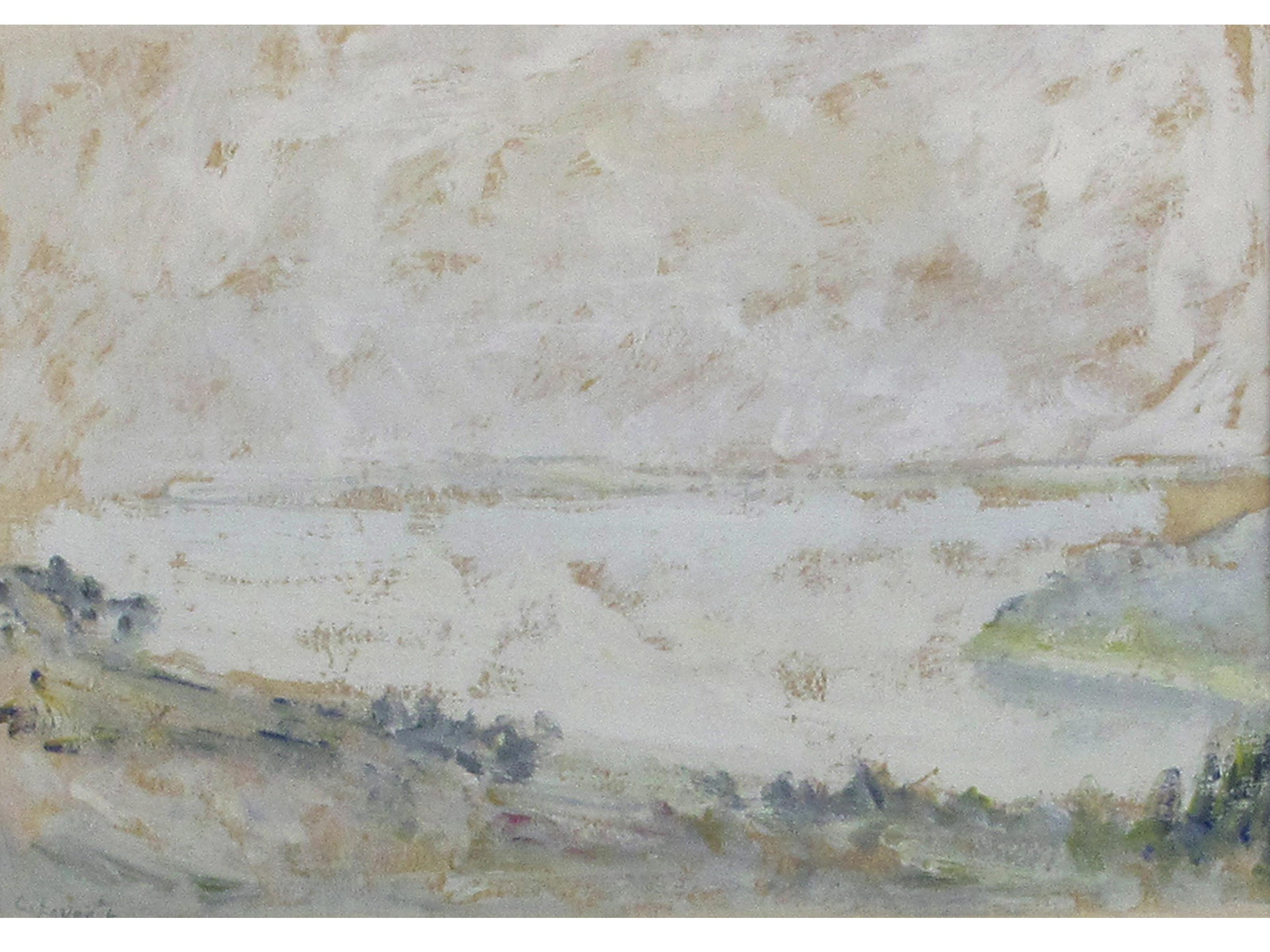 Carlo Fayer (Ripalta Cremasca 1924) Paesaggio Tempera su carta Firmato Misure 22x31.5 cm