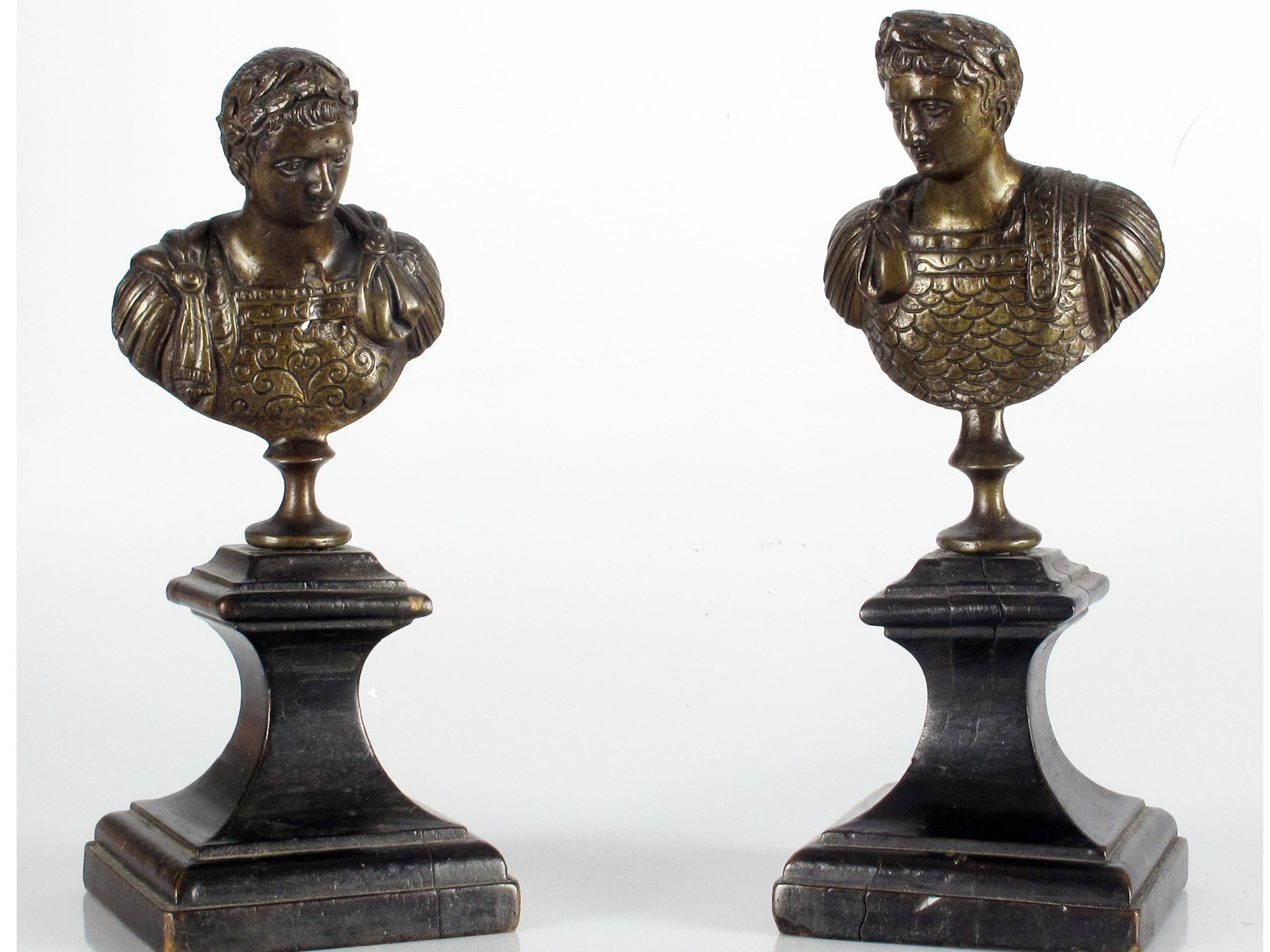 Scuola francese (XVII secolo) Coppia di busti di imperatori Bronzo Altezza 11...