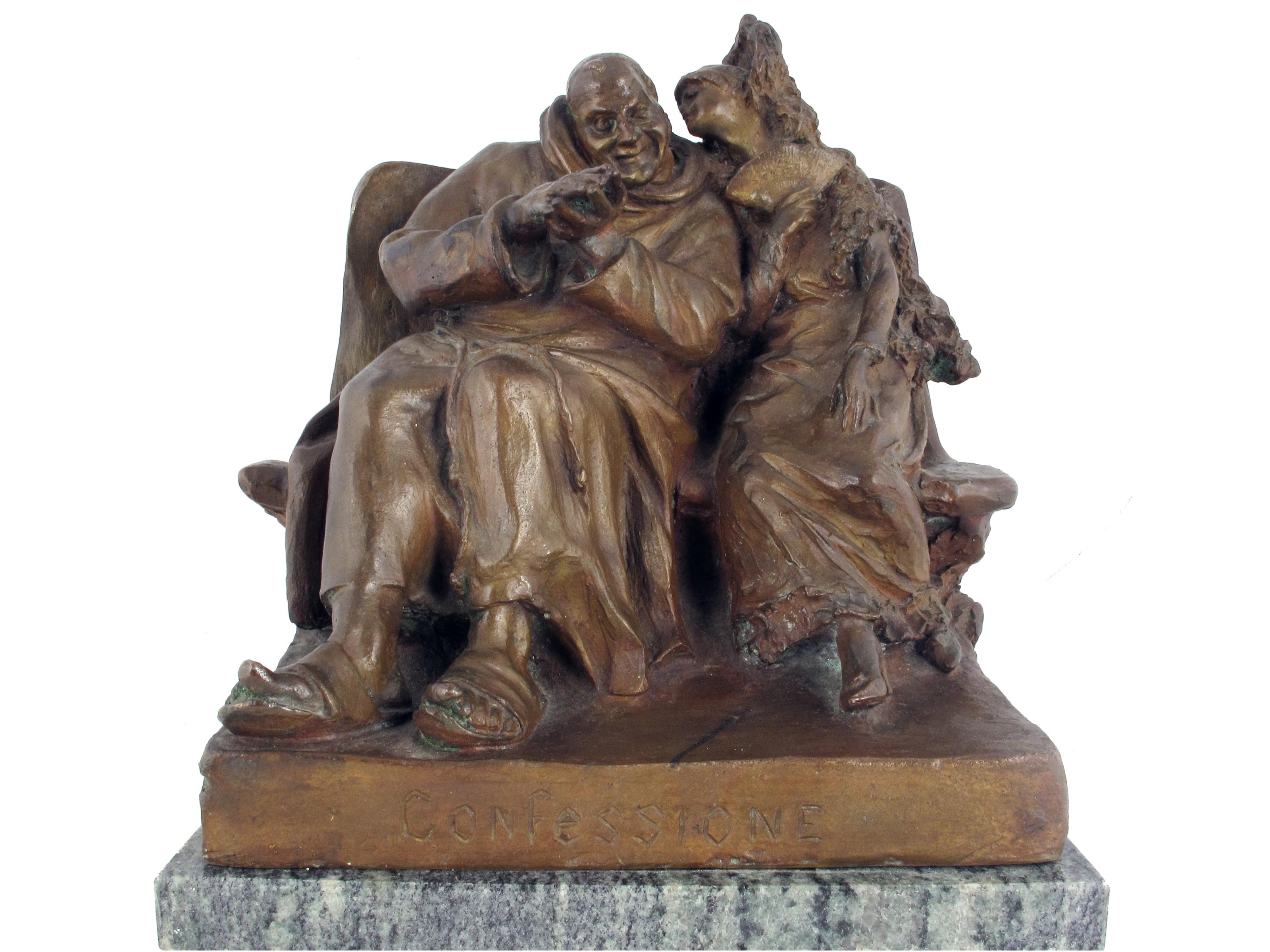 G. Rossi (XX secolo) La Confessione Bronzo Firmato Altezza 30 cm, base 22.5x20 cm