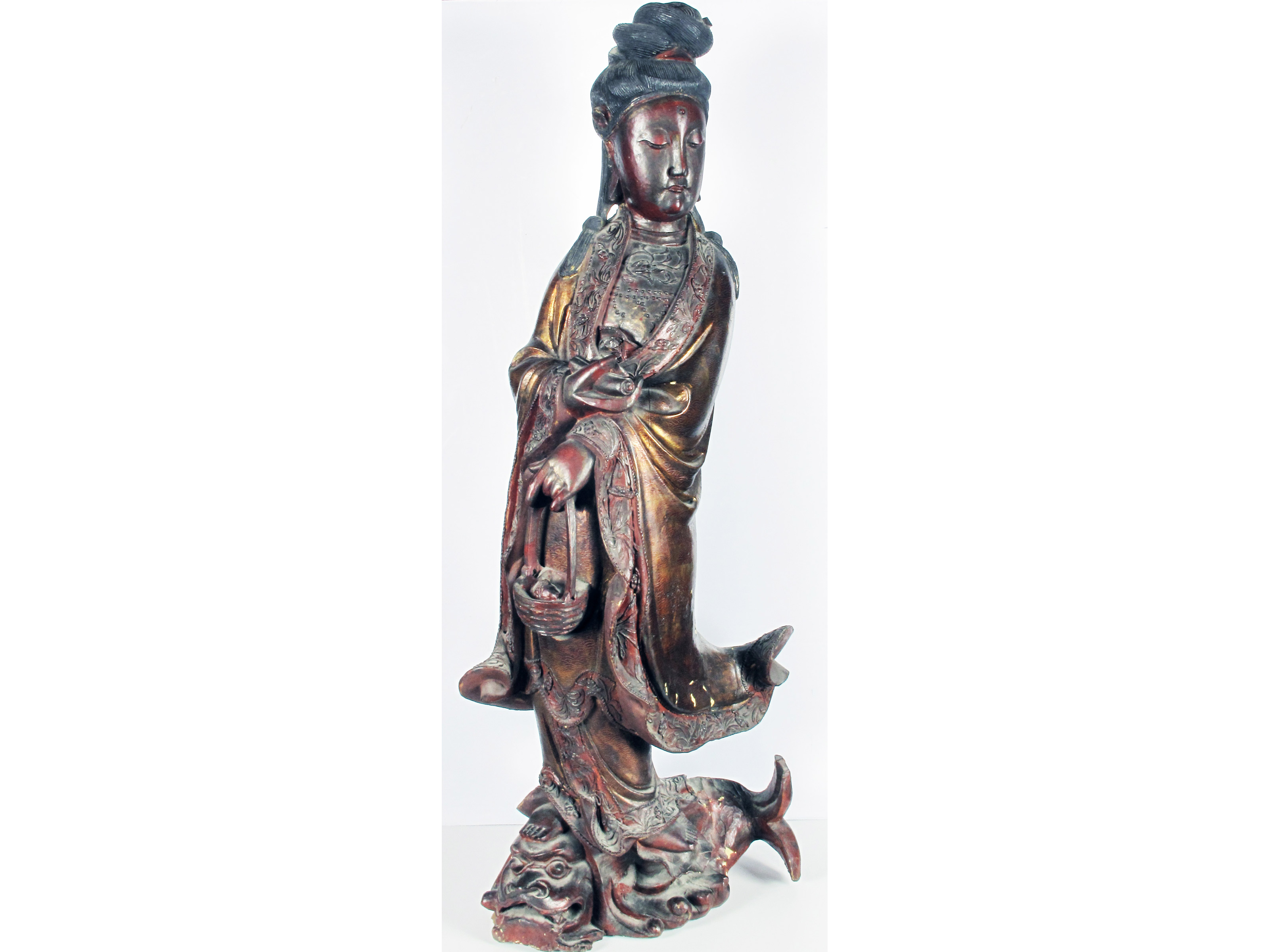 Cina (fine XVIII secolo) Guanyin Legno policromo Alta 114 cm