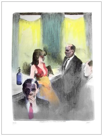 ALBERTO SUGHI Cesena 1928 – Bologna 2012 Senza titolo Litografia su pietra acquerellata a mano es.XX/IC. Firma in b. a d., tecnica in b. al c. (80,5 x 60 foglio – 65 x 50 lito.)