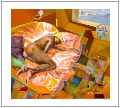 UGO ATTARDI Sori 1923 – Roma 2006 Mendicante implora regina africana Serigrafia materica a 38 colori su carta Modigliani 400 es.60/180. Firma + timbro a secco dell’artista + timbro a secco Divisione Arte, Roma in b. a d., titolo in b. al c. + timbro a secco Grafiser Stamperia d’arte, Roma. Sul verso etichetta e firma Divisione Arte, Roma. (70 x 80 foglio – 60 x 67 ser.)