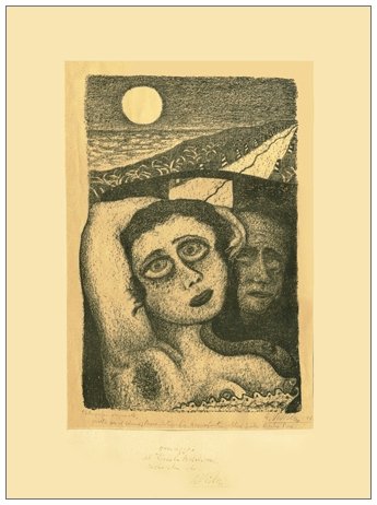 GIUSEPPE VIVIANI Agnano Pisano 1898 – Pisa 1965 6.7.2 / Premio Viareggio 1950 Litografia es.prova. Firma e data in b. a d. (datata nel 1951 perché omaggio al Circolo Babilonia di Pisa da parte dell’autore); in b. a s. “litografia originale” + prova per il volume: “prose, litografie, acqueforti”. Editore Listri Nischi, Pisa; sul cartoncino del passepartout in b. al c. dedica e firma. (44,8 x 31,5 foglio - 34,2 x 22,5 lito.) Pubbl.: “Viviani litografo” cat. a cura di Nicola Micieli e Silvio Guarasci, Bandecchi & Vivaldi Editore, Pontedera, 1988, pp.44, 119.