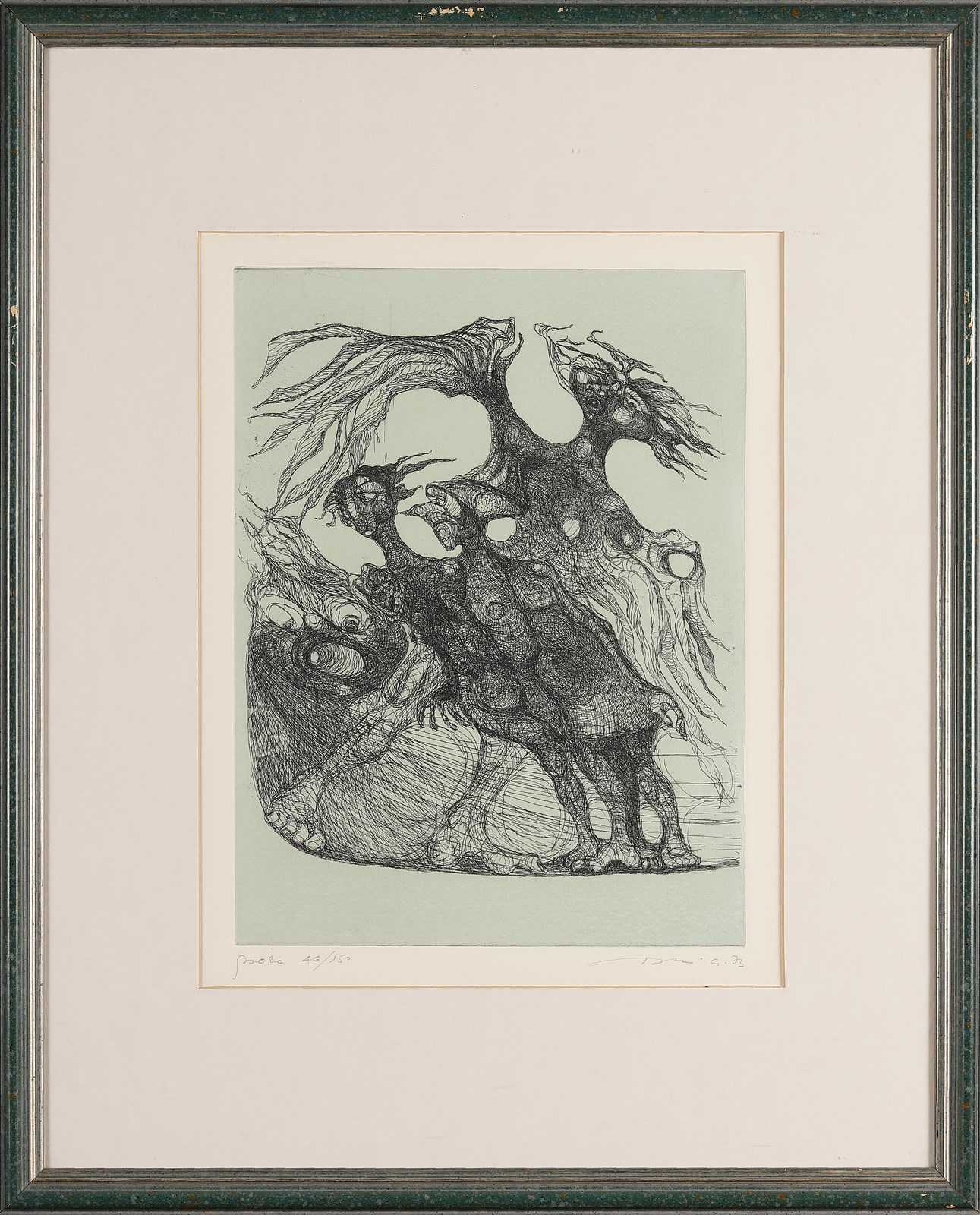 TOBEY MARK (1890 - 1976) Senza titolo. 1973. Acquaforte e incisione. Cm 25,00 x 36,00. 46/150 . Tiratura, firma e anno a matita in basso. Dimensione lastra 29 x 22,5 cm.. Cornice presente