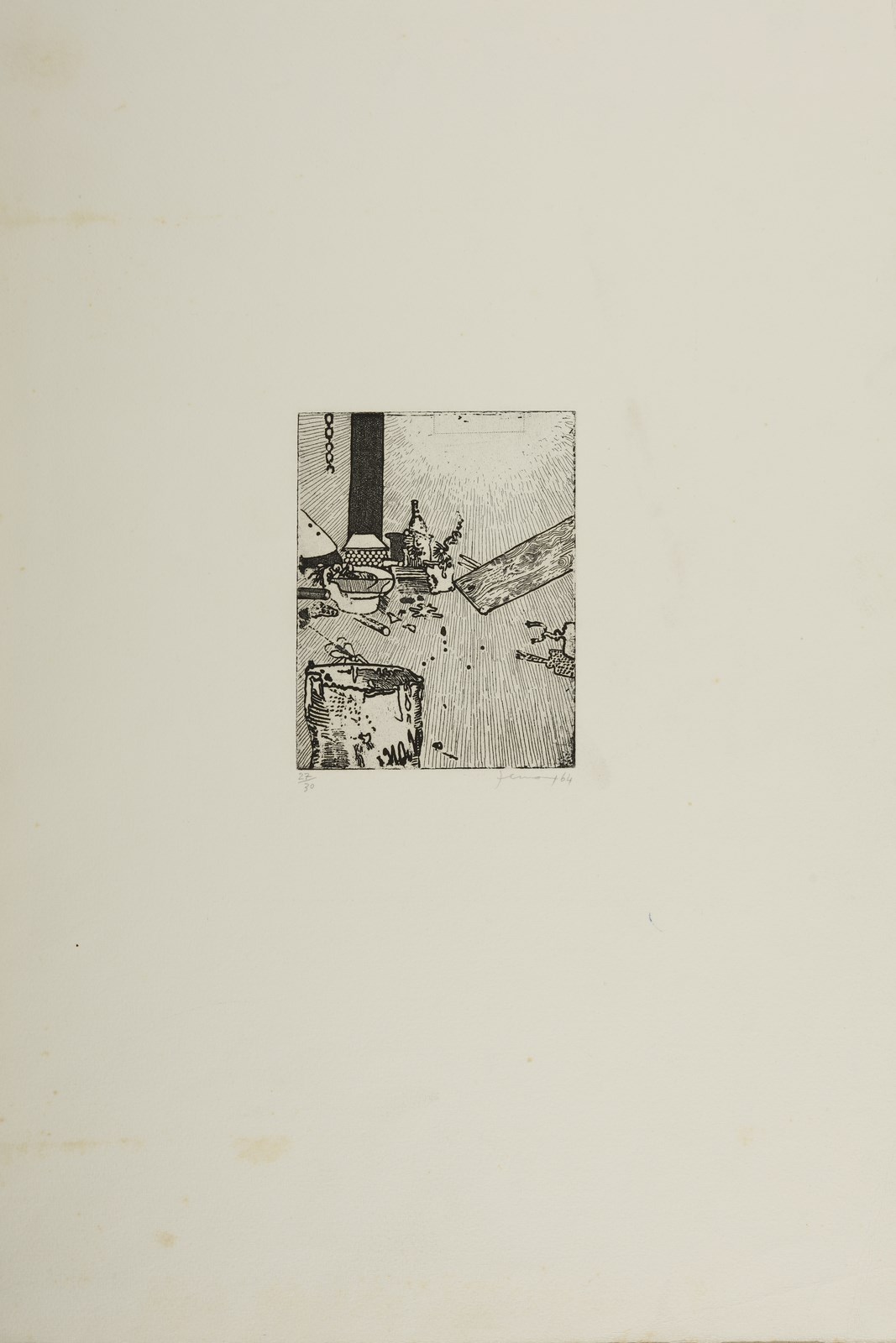 FERRONI GIANFRANCO (1927 - 2001) Senza titolo. 1964. Acquaforte. Cm 35,00 x 50,00. 27/30. Tiratura, firma e anno a matita in basso. Dimensione lastra: 13x10 cm. Lievi difetti.