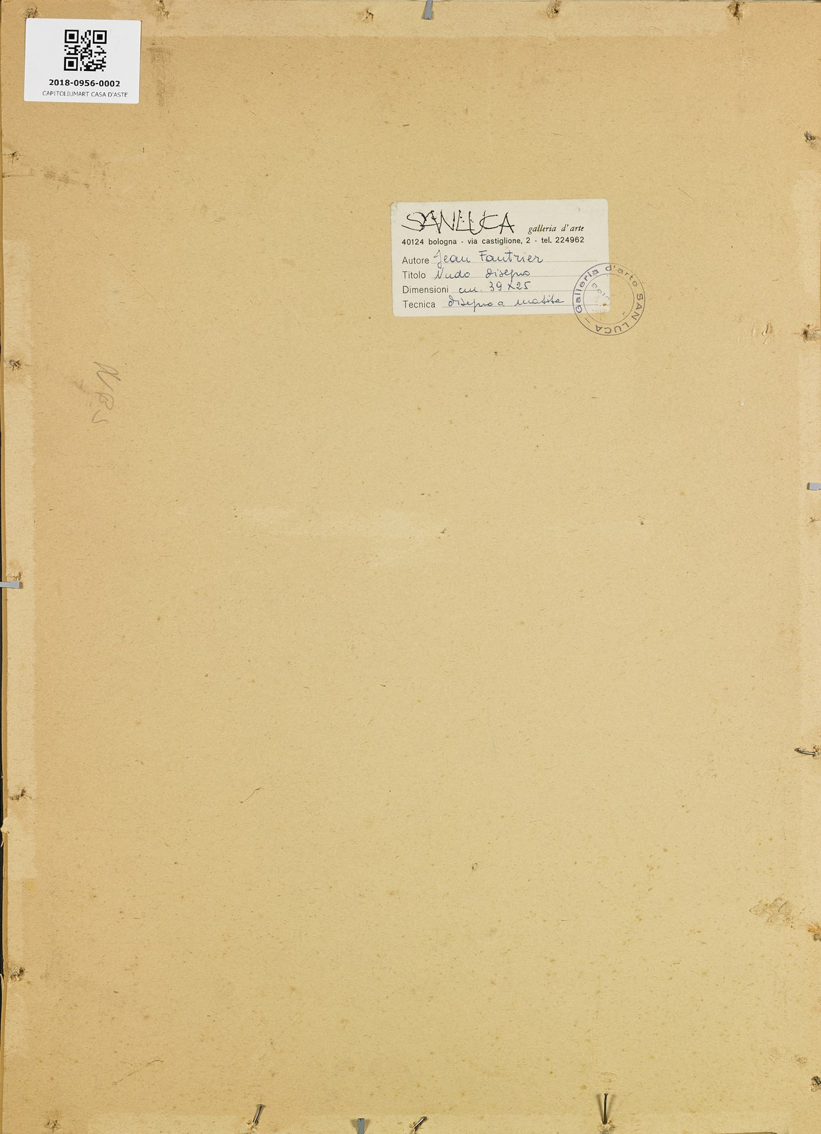 FAUTRIER JEAN (1898 - 1964) Nudo. Tecnica mista su carta. Cm 25,00 x 39,00. Firma in basso a sinistra. Al retro cartiglio descrittivo e timbro Galleria d'arte Sanluca , Bologna. Cornice presente