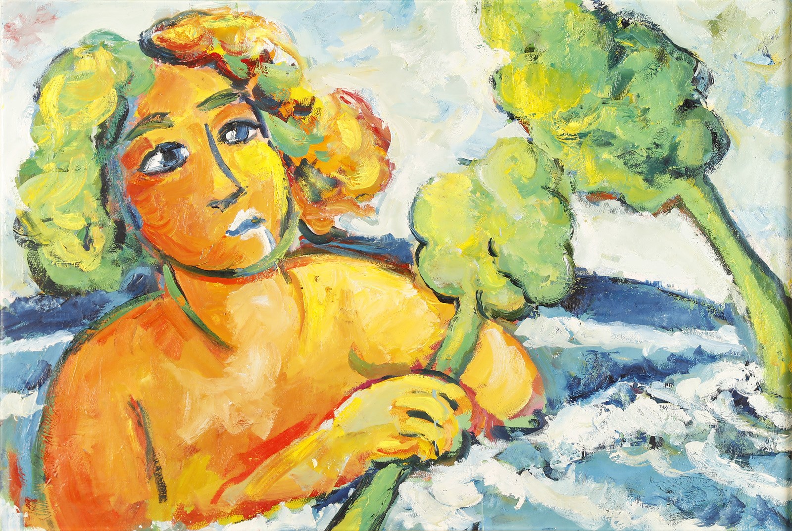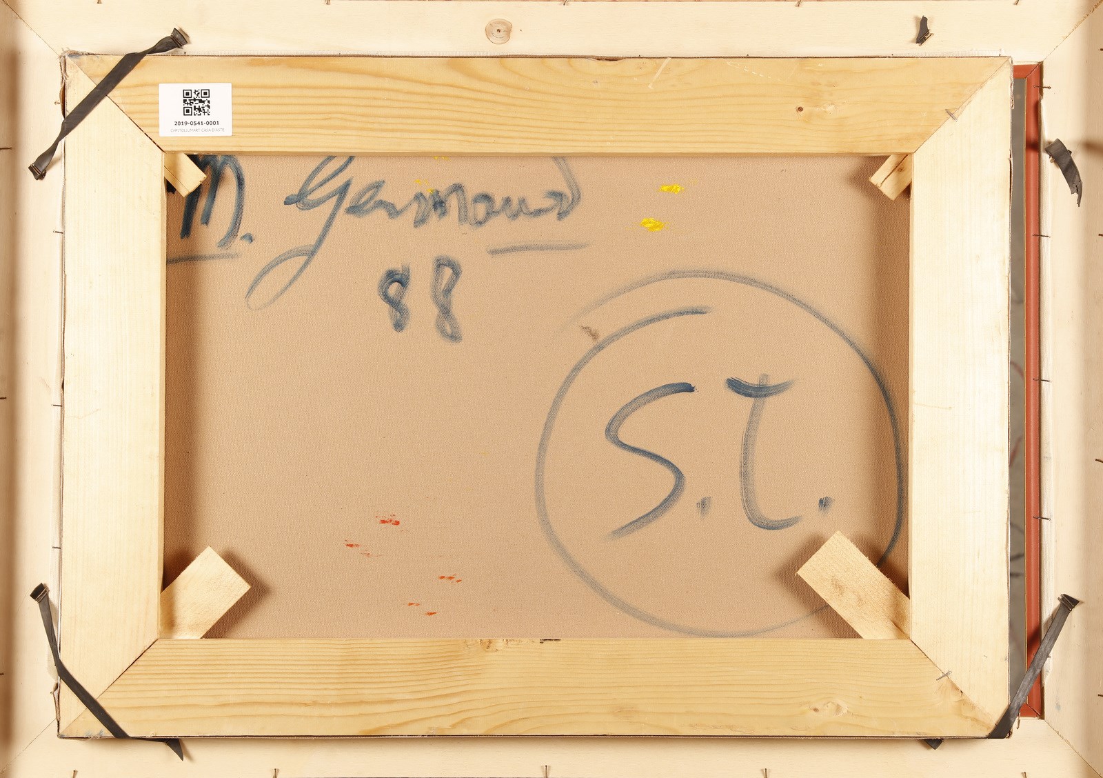 GERMANA' MIMMO (1944 - 1992) Senza titolo. 1988. Olio su tela . Cm 70,00 x 50,00. Al retro firma e anno. Opera archiviata presso l'Archivio Mimmo Germanà - Galleria d'arte L'acquario come da documentazione fotografica allegata all'opera riportante il relativo numero d'inventario. Cornice presente