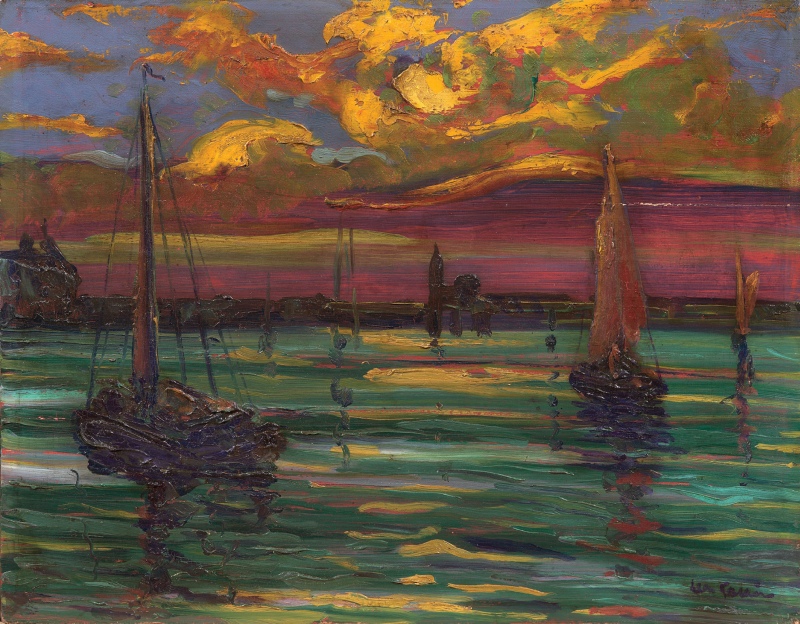 Carlo Carrà Quargnento (Al) 1881 - Milano 1966 Venezia, 1907 Olio su tavola, cm. 31,3x39,5 Firma in basso a destra: Carlo Carrà. Al verso: etichetta Galleria Pesaro, Milano. Certificato su foto di Massimo Carrà, Milano, 5 giugno 2005, con n. 06/07.