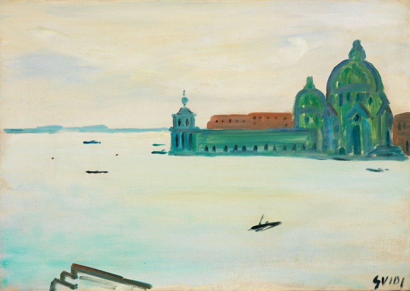 Virgilio Guidi Roma 1891 - Venezia 1984 Venezia, (1948-1949) Olio su tela, cm. 50x70,8 Firma in basso a destra: Guidi. Al verso sul telaio: timbro [Galleria] d'Arte / [...] Tega / Milano, con n. 209. Certificato su foto di Gianni De Marco (opera datata 1948/1949).