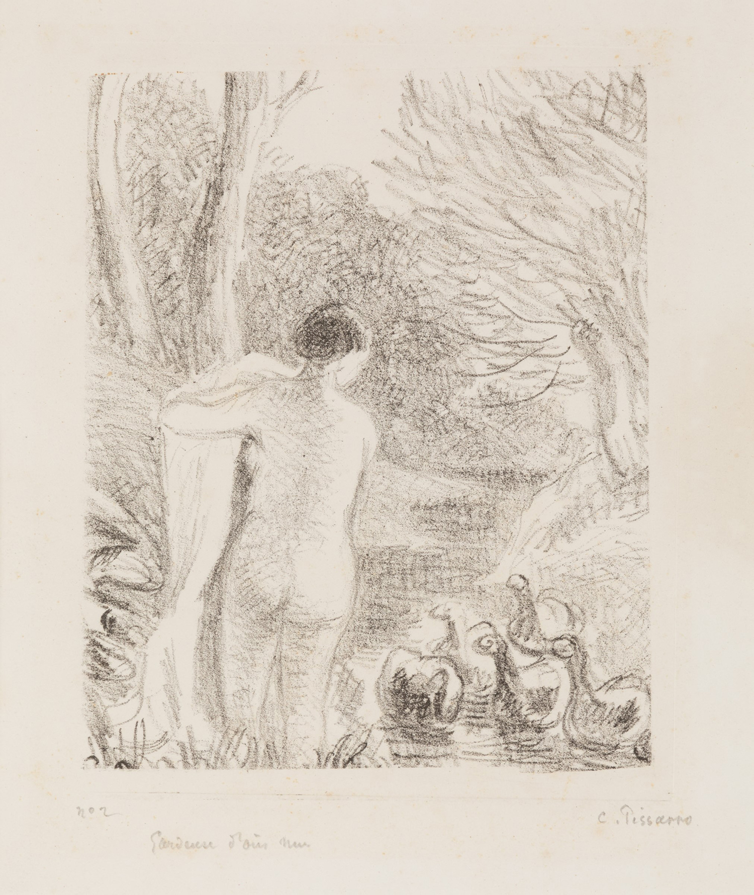 Camille Pissarro (1830-1903) Gardeuse d’oies nue, 1897 ca; litografia su carta, cm 38,6x38,6