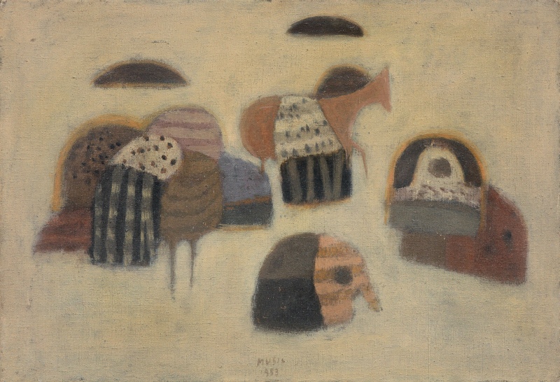 Antonio Zoran Music Gorizia 1909 - Venezia 2005 Mercato del martedì, 1953 Olio su tela, cm. 52x73 Firma e data in basso al centro: Music / 1953; al verso sulla tela firma, titolo e data: Music / Mercato del martedì / 1953. Foto autenticata dall'artista in data 21.4.84.