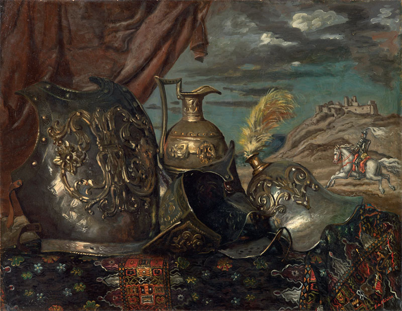 Giorgio de Chirico Volos 1888 - Roma 1978 Corazze con cavaliere (Natura morta...