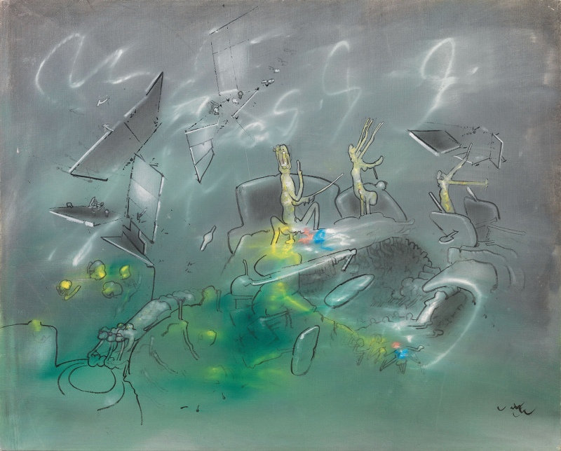 Sebastian Echaurren Matta Santiago del Cile 1911 - Tarquinia (Vt) 2002 Senza titolo, 1968 ca. Olio su tela, cm. 85,5x103 Firma in basso a destra: Matta. Storia Collezione privata, Francia; Collezione Besnard, Parigi; Collezione privata Certificato su foto Archives de l'Oeuvre de Matta, 23 maggio 2007.