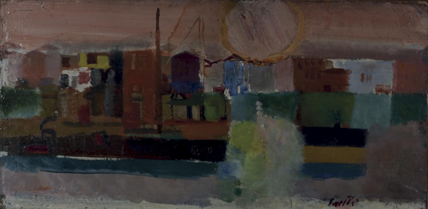Lot 44 | Bruno Saetti PAESAGGIO CON SOLE olio su cartone, cm 24x48 firma eseguito nel...